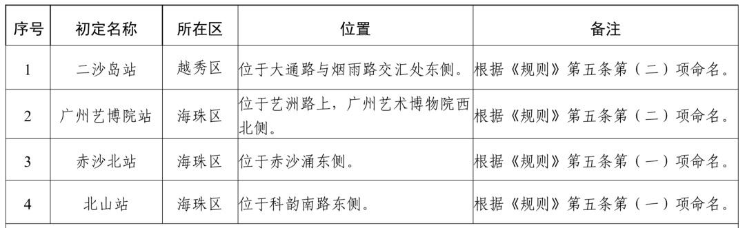 建议站名:七星岗、赤沙西、赤沙涌、琶洲南
