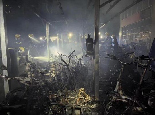 火灾烧毁烧损室外充电桩插座线路、58辆电动自行车及蓄电池、15辆自行车、1辆汽车等,过火面积约20平方米。所幸扑救及时,未造成人员伤亡,火灾原因正在进一步调查中。