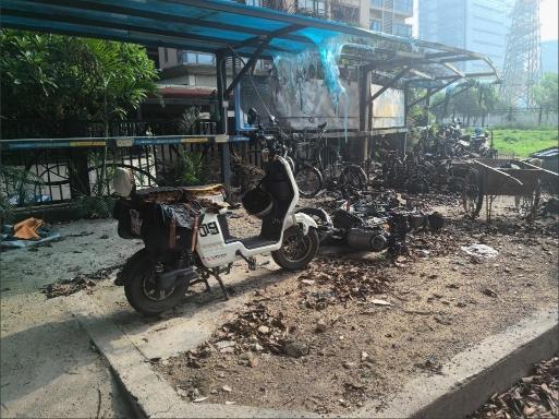 现场是室外电动自行车充电导致电动自行车棚顶及22辆电动自行车起火,过火面积约20平方米。所幸扑救及时,未造成人员伤亡。经调查,起火原因系电动自行车锂电池热失控。
