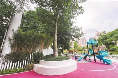改造后,公园植被层次丰富,还添置了儿童活动设施。