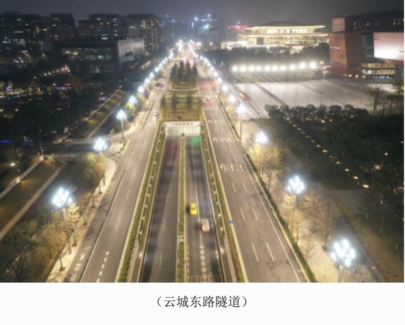 项目通车后,有效缓解白云新城交通压力,对综合提升周边景观及城市空间、进一步优化白云新城路网结构具有重要作用。同时,两隧道顶部开放空间将白云国际会议中心、相邻地块直接联通,推动周边区域经济高质量发展,更大程度实现青山入城格局。