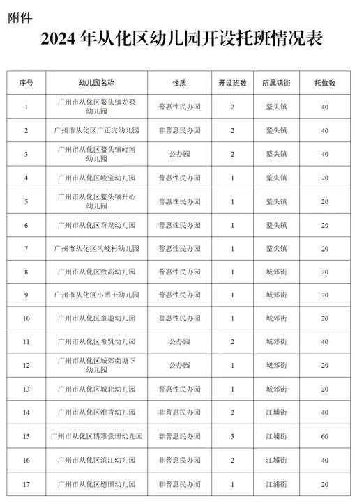 关于公布2024年从化区符合条件开办托班幼儿园名单的通知