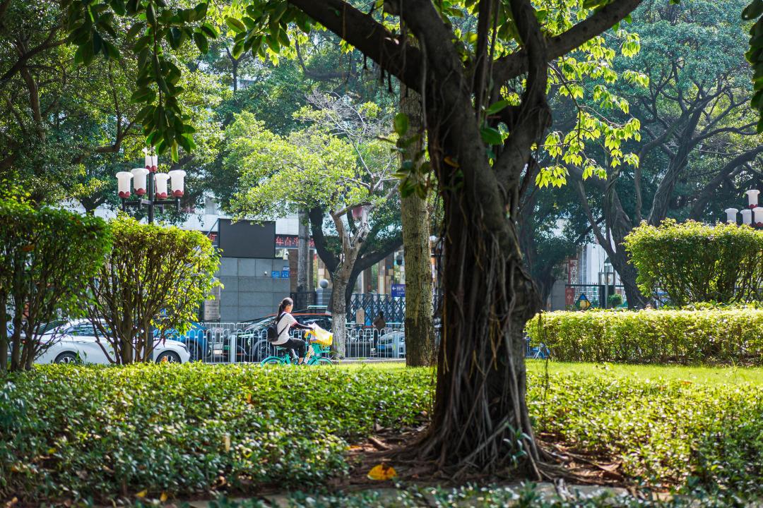 广州街边的树木沐浴在阳光中。(图文无关)