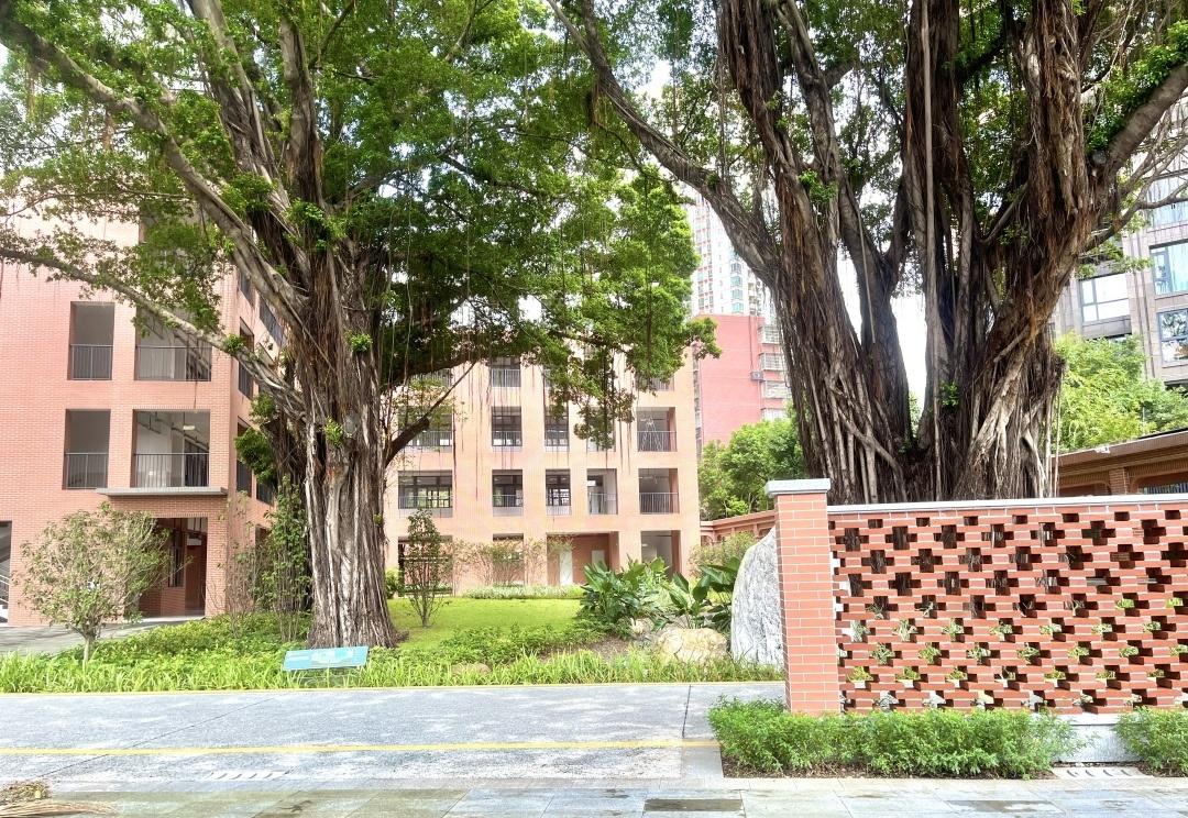 今年9月,坐落于珠江边的海珠区宝玉直实验第二小学(以下简称“宝实二小”)迎来一年级3个班的“创校宝宝”。该校办学规模为18个教学班,是为缓解周边适龄儿童入学压力而建。走进宝实二小,整个校园绿意葱茏,多棵大榕树矗立于校园中心区域,“新校古树”成为一道独特风景。此外学校内还生长着60多种植物,包括睡莲、紫薇、鹅掌藤、肾蕨等。