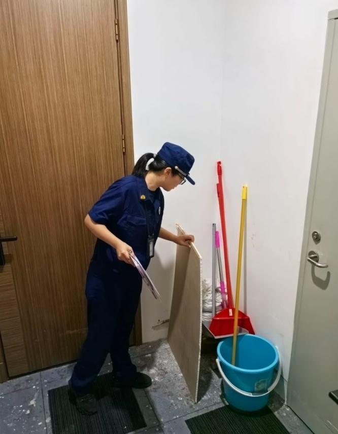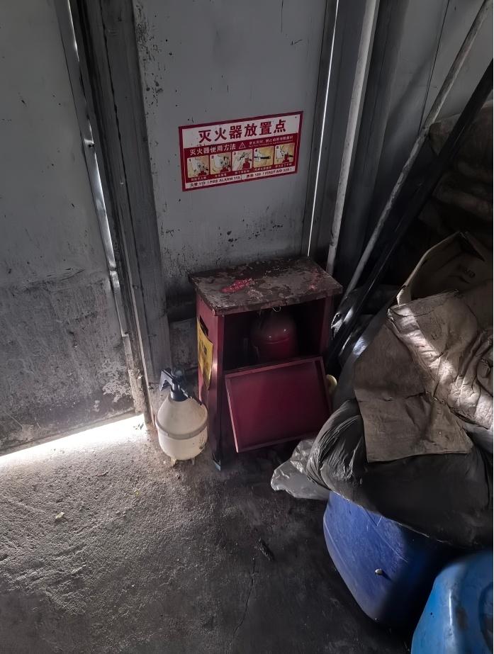整改措施:已责令负责人及时清除水泵房门前的杂物,并及时更换灭火器箱体。