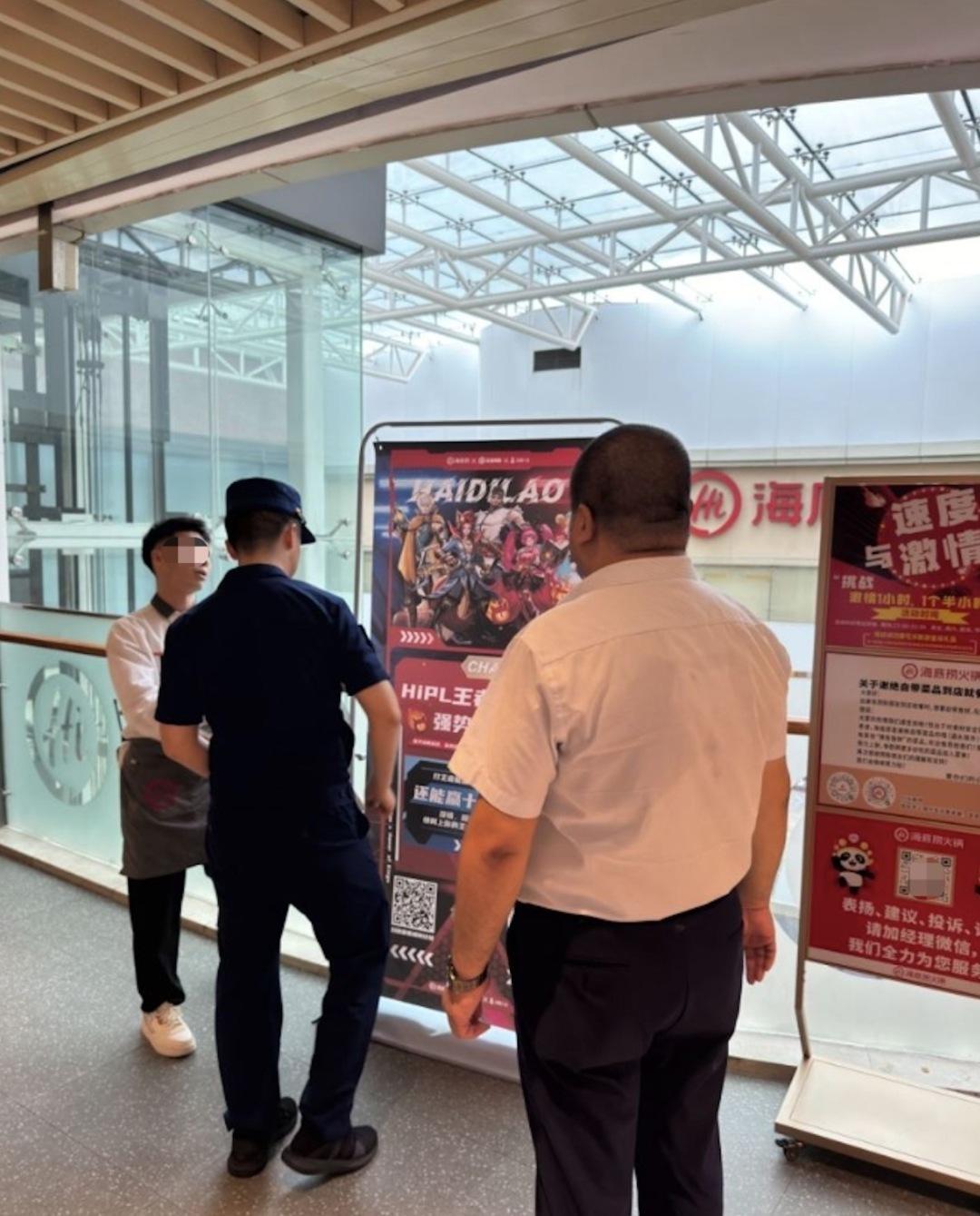 2.卷帘门下摆放广告牌