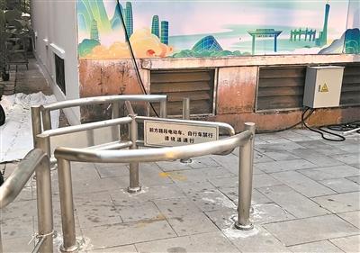 对于不少住户反映的婴儿车和轮椅出入问题,记者发现,除了供行人通过的弯折止车柱外,现场也配备了转盘式的止车柱。住户刘女士现场试了一下,婴儿车可轻松进入。