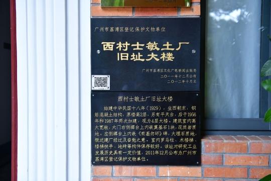 2011年,西村士敏土厂旧址大楼被登记为荔湾区文物保护单位。如今,西村士敏土厂旧址大楼已经成为广州最有“工业风”的打卡点之一,两层旧楼庄严大气,门口的石狮、米黄色的外墙以及大楼门口墀台上立着的《有基勿坏》碑,都在向人们诉说着这座百年工厂的动人往事。