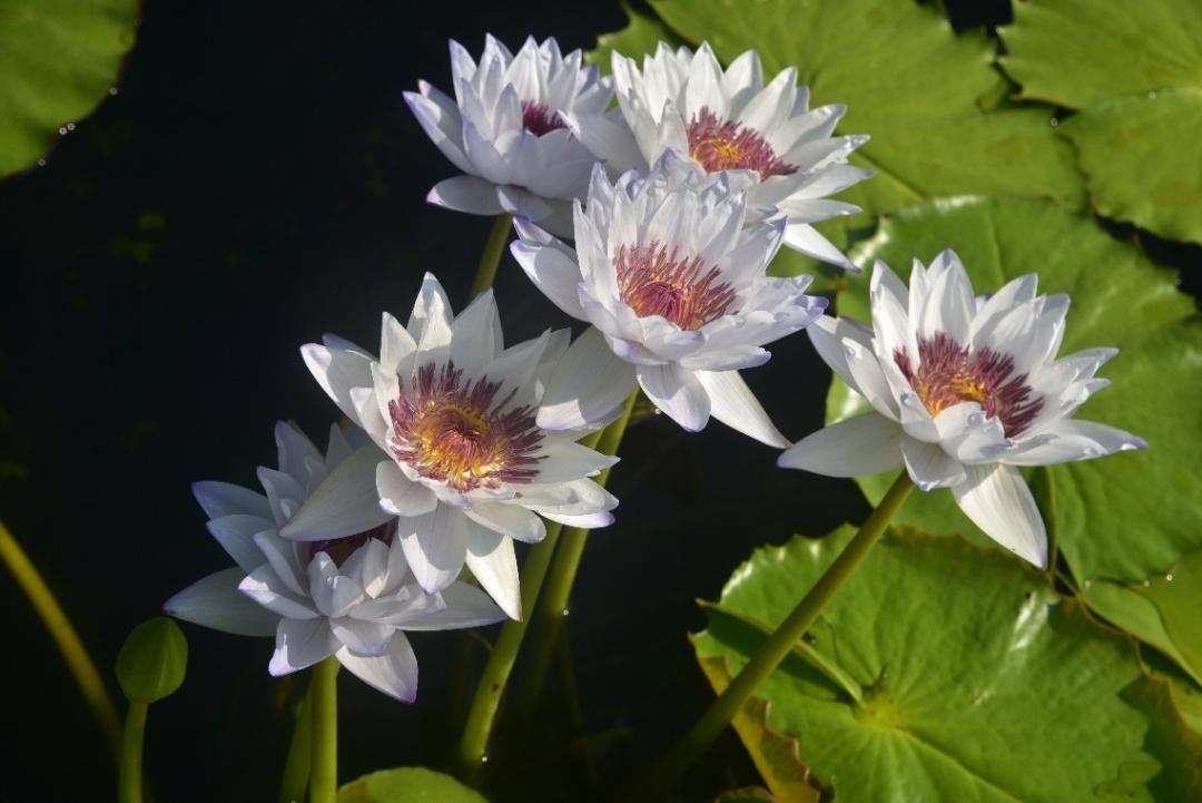 澳大利亚巨睡莲因其株型巨大,展幅常可达3米,叶径常可达30-40厘米,花朵常高高挺出水面30-50厘米,花朵硕大,被称为世界上最大的睡莲。夏末秋初,澳大利亚巨睡莲经过一个生长季的充分发育,常可以见到多朵花同时绽放,开出最佳状态,为最佳观赏季。