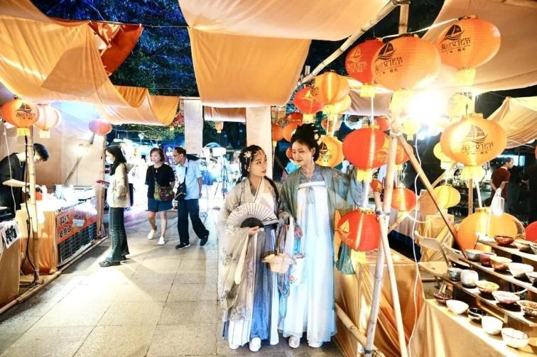 五仙观南粤先贤馆广场开设的海丝主题复古文创市集以古代广州“蕃坊”为原型
