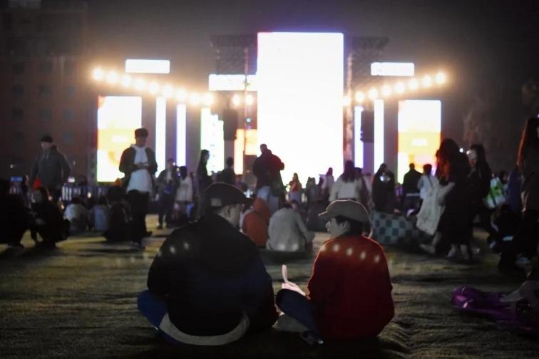 2023广州超级草莓音乐节现场,坐在草地上放松、听歌的人