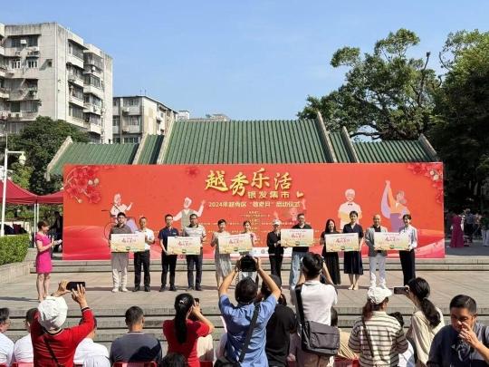 在重阳节即将来临之际,10月10日上午,2024年广州市越秀区“敬老月”活动启动仪式暨乐活越秀·银发集市活动在光塔街五仙观广场举行。