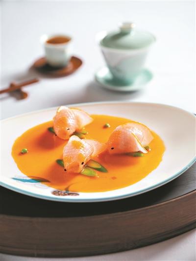 同样如此巧妙地将广府特色与境外客商口味结合的,还有出自明阁餐厅的新派点心。“目前已有不少客商入住,我们刚推出的游龙金鱼饺就特别受外籍客商喜爱。”据厨师介绍,这款点心在传统点心基础上,以鲜虾百花馅为基,融入酸辣冬阴功汤,造型灵动。Jac称,广交会期间,豪厨全日制餐厅将融入新的美食特色,首次引入印度风味的佳肴,为外籍客商提供多样性的自助晚餐。