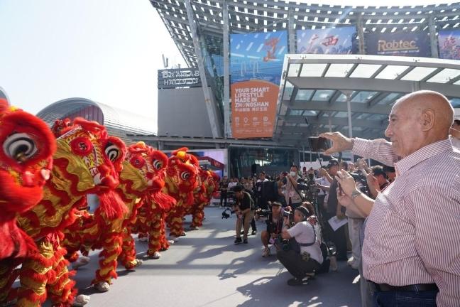 群龙舞动,气势磅礴;南狮献礼,活灵活现;极具中华传统文化特色的表演引得现场的国内外客商赞叹连连,纷纷举起手机拍摄留念。有的客商甚至开启了线上直播,将“中国第一展”现场的火热氛围向全球各地的客商同步传递。