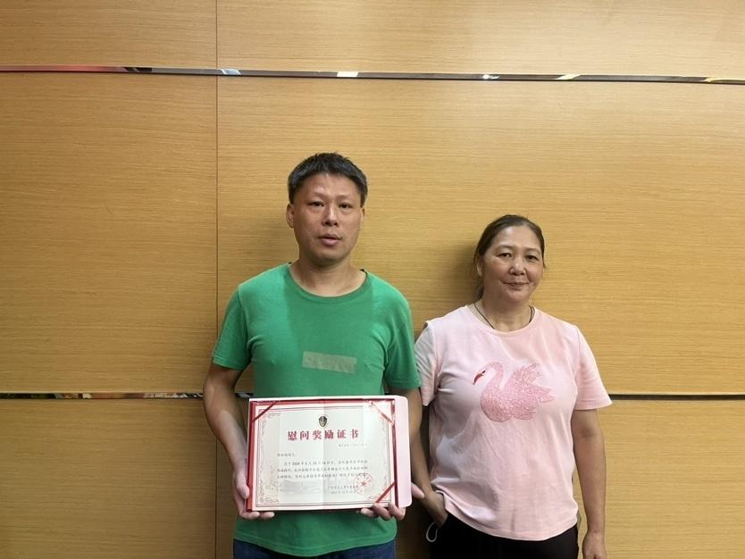 陈柱强的英勇行为也得到了妻子的大力支持。今日,妻子也在颁奖现场见证这一光荣时刻,“我为他点赞,很英勇,幸亏他及时拦住了过往车辆!”陈柱强妻子说,当时她也在现场,她和丈夫一起提醒着过往路人注意安全,远离大树,“面对危险,这也是我们的自然反应,肯定要劝说周边行人还有车辆远离危险。”