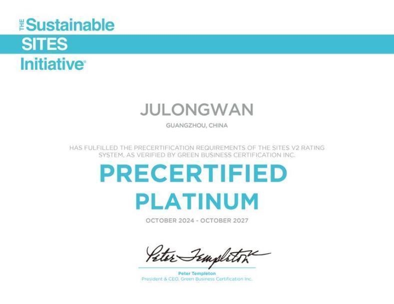 聚龙湾项目(大冲口涌碧道)SITES铂金级预认证证书