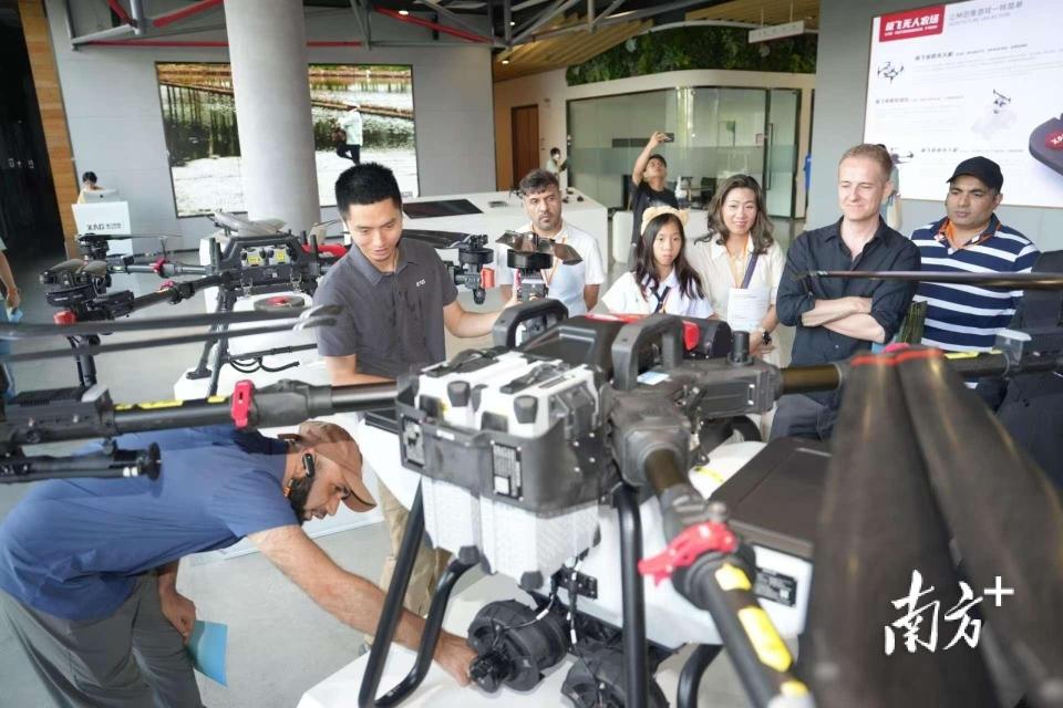 10月19日,外商到极飞科技参观,仔细咨询了解无人机在农业领域的应用。