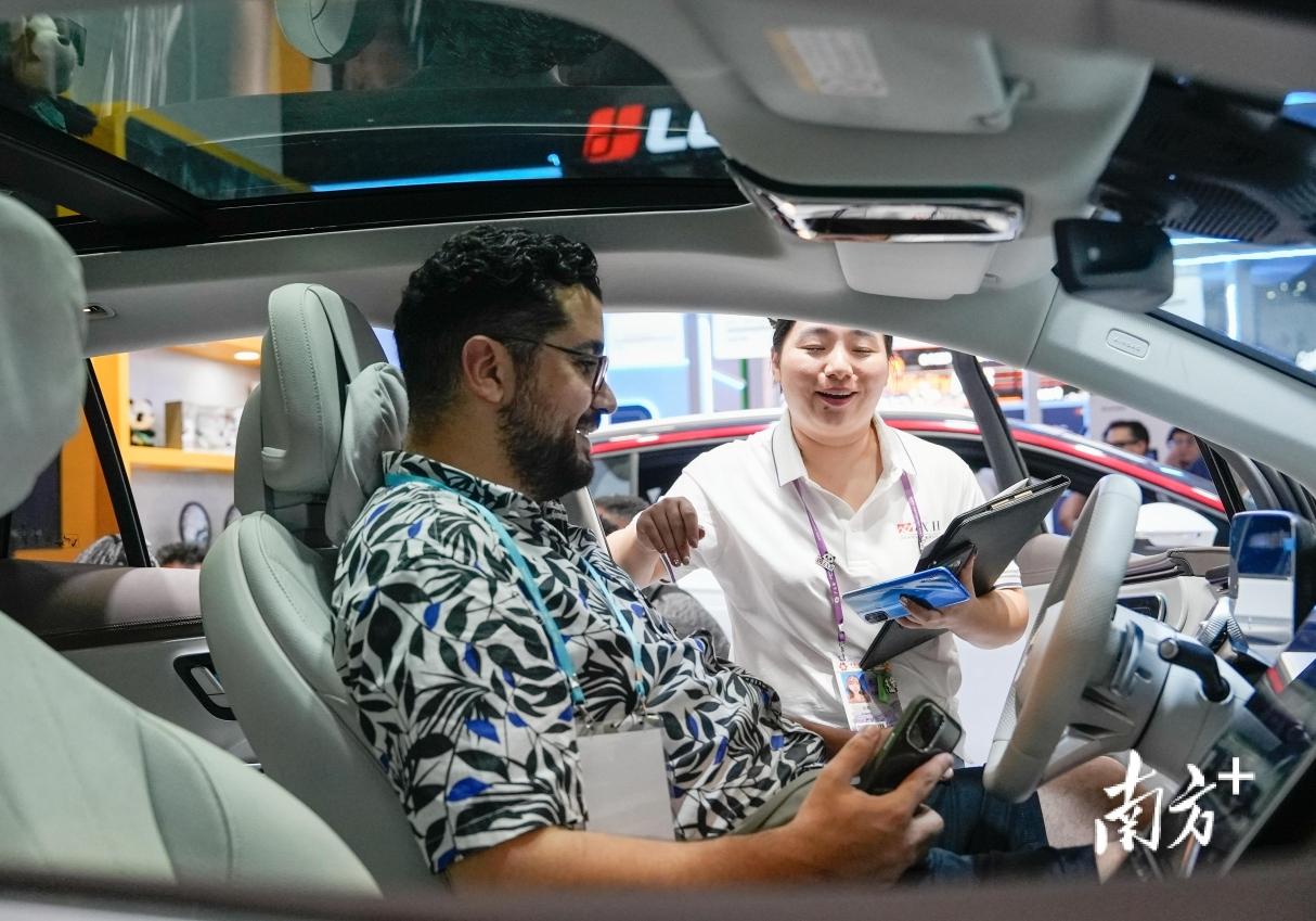 10月16日,第136届广交会新能源汽车及智慧出行展区,来自世界各地的外商挤满了展位,不断地咨询产品信息。