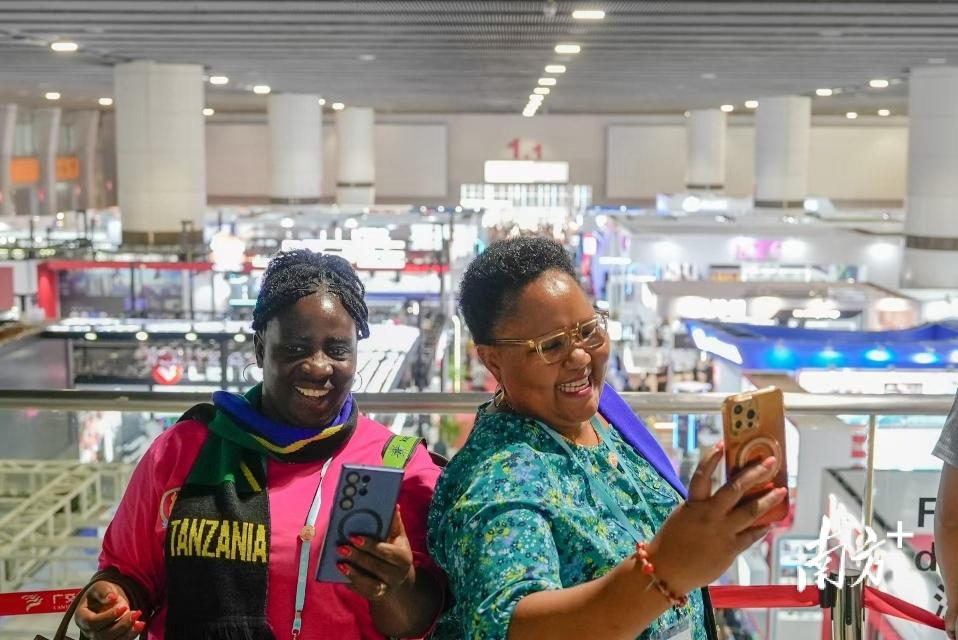 10月17日,人声鼎沸的广交会现场吸引了采购商们与会场合影留念。