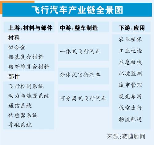 业内指出,解锁“低空赛道”的不只是无人机,飞行汽车等载人航空器等也纷纷发展创新。在众多低空经济的细分领域中,最引人注目的是eVTOL飞行汽车被越来越多国内外企业视为低空经济的主要运载工具。低空出行为人们拓展了视野,提高了通勤效率,“打飞的”的美好愿景逐步变为现实图景。
