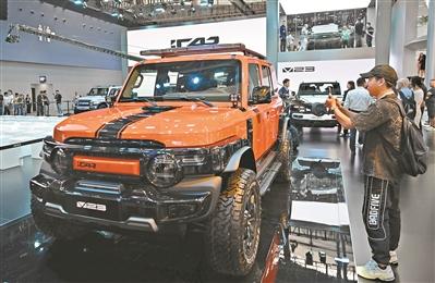 观众在奇瑞展台拍摄iCAR V23。 新华社发