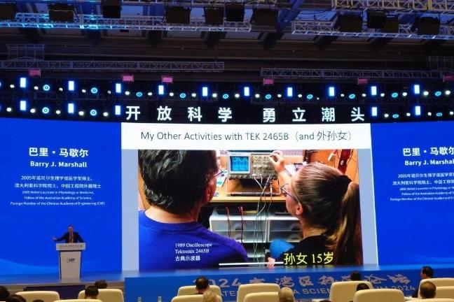 11月17日,2024大湾区科学论坛主论坛上,2005年诺贝尔生理学或医学奖得主、澳大利亚科学院院士、中国工程院外籍院士巴里·马歇尔现场带来了以《诺贝尔奖得主的胃病诊断新视角:发现、创新与转化》为主题的主旨演讲。风趣幽默的他以中文打招呼开场,用中国古语“知己知彼、百战不殆”描述人类与幽门螺旋杆菌的斗争。