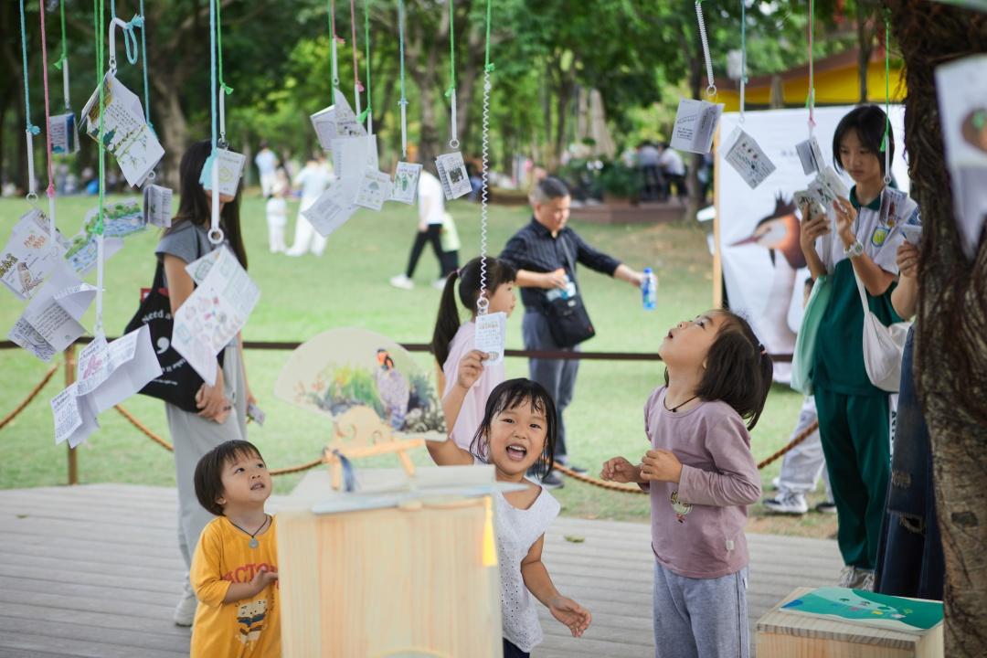 为增强活动趣味性,现场还精心布置了多项别具一格的展览:南草坪主舞台旁“我身边的绿与美”自然日记创作大赛作品展,集中展出富有创意的自然日记获奖作品;自然教育市集活动周边,广州市自然教育成果展和“任鸟飞”城市鸟类生物多样性公益展吸引众多游客驻足品鉴;绿创空间搭设的“零碳公园建设家”环保艺术展,互动体验新颖独特,将持续开展至11月24日。