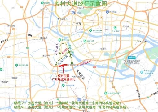 路线Ⅵ:芳村大道(起点)→花地大道北→花地大道南→东南西环高速公路。