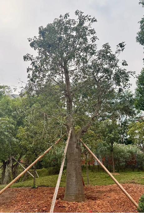 种植在木棉道入口处的猴面包树被称为非洲的“生命之树”,也是阔叶植物中寿命最长的植物之一。其全株可食用,果肉可生吃,还可榨取食用油;树叶含钙高,可做汤,可入药;树干粗壮如塔,可储存大量水分,树干掏空后还可提供住所,真正实现了“能吃能喝,还能住”的多重功能。