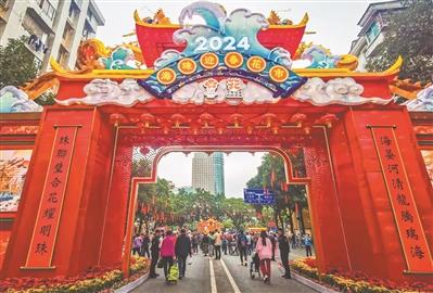 广州春节年味浓,图为2024年海珠花市主牌楼。广州日报全媒体记者吴子良 摄