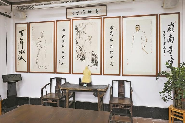 画院正屋中堂为“春睡讲堂”,正中悬挂岭南画派三位创始人高剑父、高奇峰、陈树人的画像。
