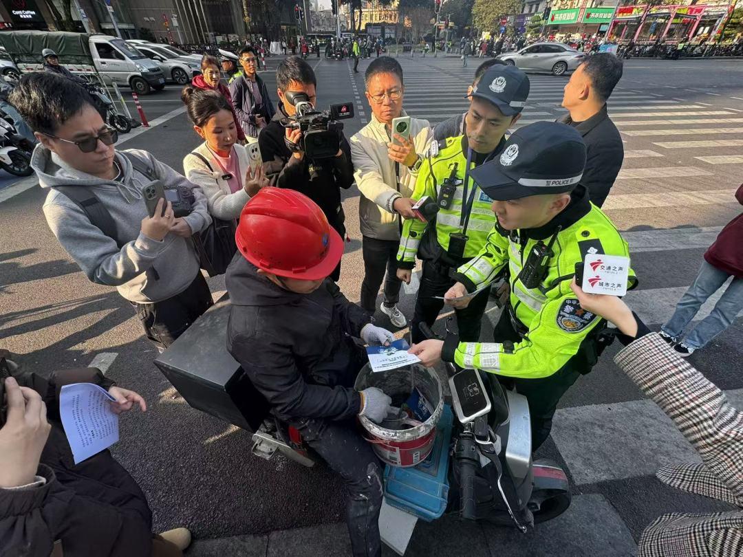 新规实施首日,路面执法情况如何?记者来到广州交警设于海珠区江南大道同福东路口的查车点直击现场。