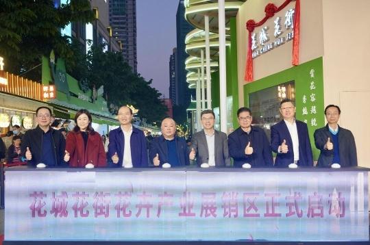 现场,在市民游客共同见证下,出席的嘉宾一同为“花城花街”揭幕。展销区灯光渐次亮起,灯光与花卉交相辉映,标志着北京路“花城花街”花卉产业展销区正式开门迎客,寓意着广州花卉产业即将开启璀璨新篇。