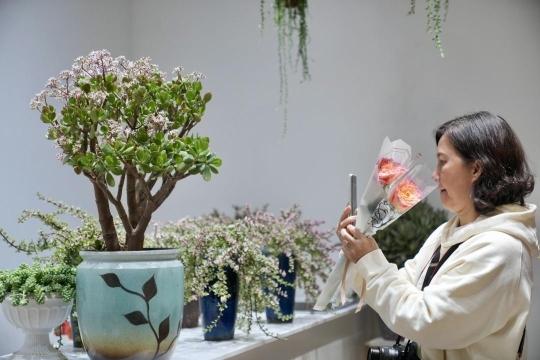 “好惊喜!没想到在北京路也能‘行花街’,不用等到春节也能感受广州花市的魅力。”来自天津的游客林女士说。1月8日傍晚,北京路“花城花街”花卉产业展销区揭牌亮灯仪式在北京路步行街南段举行。由鲜花、兰花、盆景、多肉以及省农科院、市园科院名优花卉品种组成的7个花房,1个展示厅,1个直播间正式迎客。