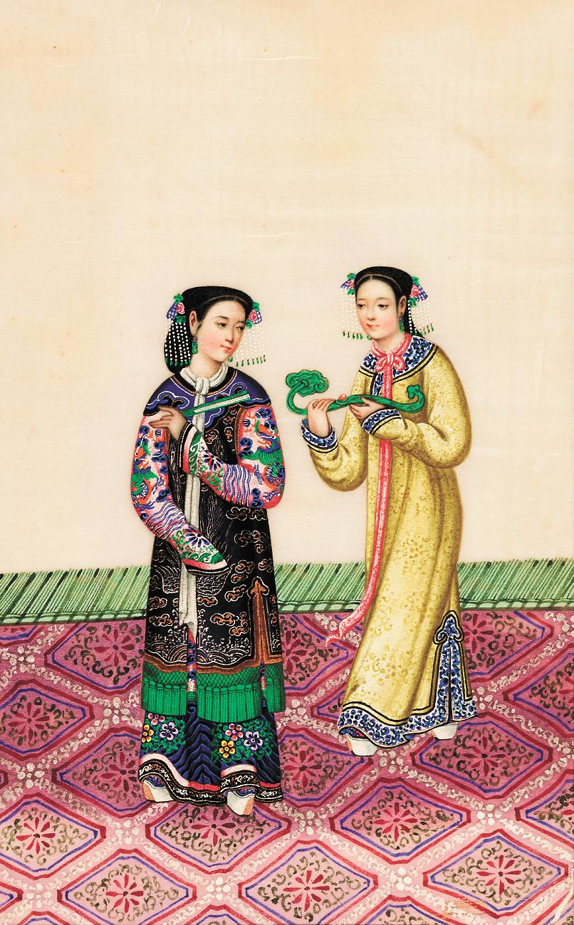 乾隆二十二年(1757年)实行“一口通商”政策,广州成为西方国家与中国进行经贸往来和文化交流的重要口岸,广州十三行也成为西方人士进入中国的必经中转站和管理机构,众多西方绘画人才通过十三行进入中国。西方绘画在中国宫廷和民间形成了各具特色的绘画风格。在宫廷,以郎世宁为代表的西洋画家根据清廷帝王的审美喜好,将西方写实的绘画风格融入中国传统绘画之中,形成“新体画”。而在同一时期的广州,本地画家画匠为满足西方市场的需求,采用西方的绘画技法和绘画材料而绘制了有别于中西方传统审美的新式艺术品——“外销画”。