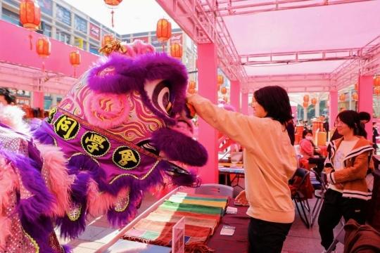 现场年味满满,精心设计的门楼、舞台中央的桃花树、还设置了多个趣味打卡点。市民朋友在这里拍照打卡留念,还可以通过互动游戏集章获得福袋,吸引众多市民游客积极参与。