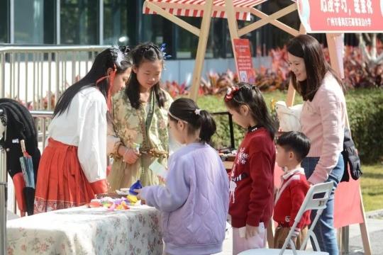 在非遗展示区,广州市第一中学附属詹天佑小学、海珠区知信小学、番禺区石碁镇小龙小学、凌边小学、黄埔区港湾小学、广州开发区第二小学(东校区)等学校纷纷带来了师生非遗作品展示。漆扇制作、乞巧工艺、剪纸团扇、葫芦灯、剪纸灯笼、拓印、粤剧脸谱、书法、版画、风筝制作、醒狮文化……丰富多彩的非遗项目展示和体验,让家长和孩子们近距离领略和体验传统工艺的精妙。