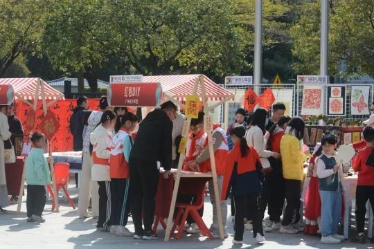 现场,多个摊位纷纷拿出精心准备的作品参与义卖,包含品种多样、琳琅满目的漆扇、春联、福字、剪纸团扇、绒花、彩珠手工艺品、舞台剧门票等,为开展乡村少年儿童的校外素养教育筹集更多资金。
