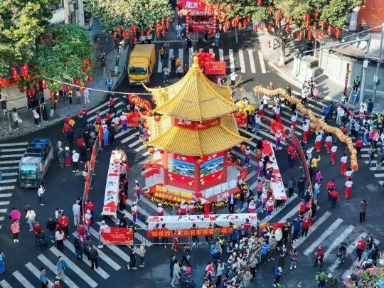 现场还安排多名书法家现场挥毫,书写的“福”字赠与现场市民游客并合影,营造祥和、欢乐的节日气氛。