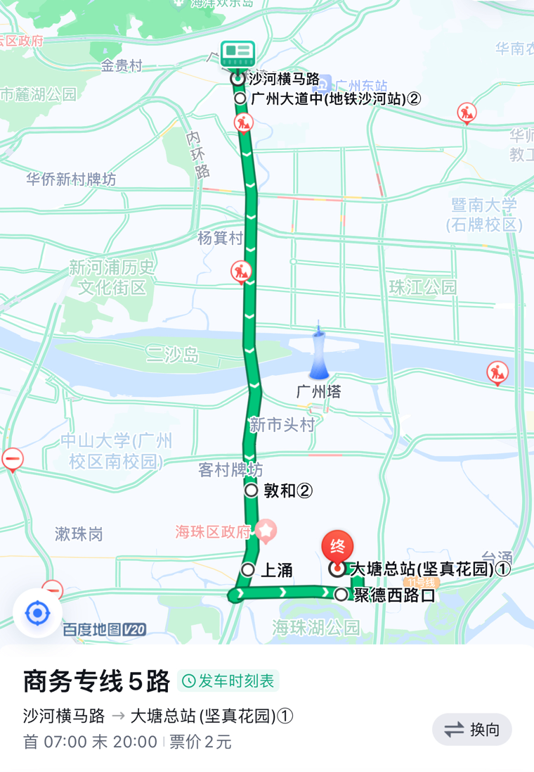 商务专线5:沙河横马路站—大塘(坚真花园)总站