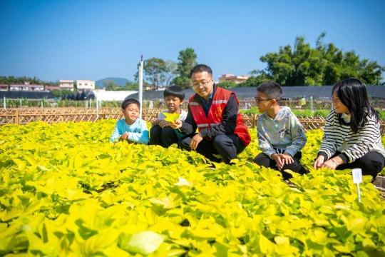 “你们知道这是什么花吗?姜荷花!作为多年生草本热带球根花卉,它原产于泰国,花色有淡雅的粉色、白色,还有浓郁的红色。每当花开时节,它就会盛放,花朵苞片与荷花的花瓣极为相似,且为姜科,故称姜荷花,也被人们称作长在土里的‘荷花’。”记者在小菜园中间循声望去时,花都区委组织部派驻花城村驻村干部马国需正蹲在一簇花骨朵旁,给身边四五个本地花城小学的学生耐心讲解园内的各种花卉和蔬菜品种。
