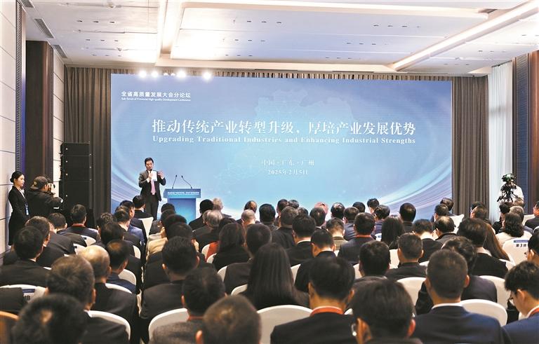 传统产业是现代化产业体系的基底,是广东经济稳定运行的基本盘,在稳增长、稳就业、稳外贸中发挥重要作用。昨日下午,广东“新春第一会”——全省高质量发展大会“推动传统产业转型升级,厚培产业发展优势”分论坛在广州召开,省有关单位负责同志,各地级以上市政府及其工业和信息化主管部门负责同志,有关产业园区、企业、金融机构、产业基金、传统产业相关行业协会代表参加,共论传统产业升级之路。