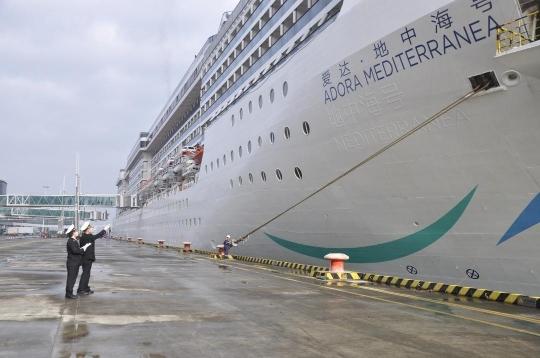 春节期间,广州海关所属南沙海关关员在南沙国际邮轮母港对出境邮轮进行监管。