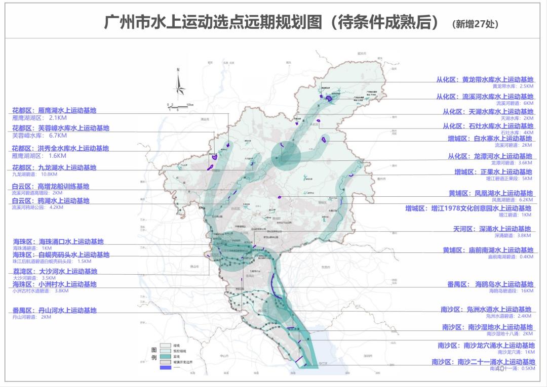 选址原则上,《规划》提出,在水环境方面,选取水质达到准IV类水质及以上、且原则上河道宽度大于30米、无涡旋和暗礁的河段开展水上运动。在航道环境方面,广州港区现29段航道正常运维,珠江游及水上公共交通运输现14条航线正常运作。水上运动点优先选取无通航需求河道,可减少与船只或航行交通的冲突,降低事故发生的可能性。