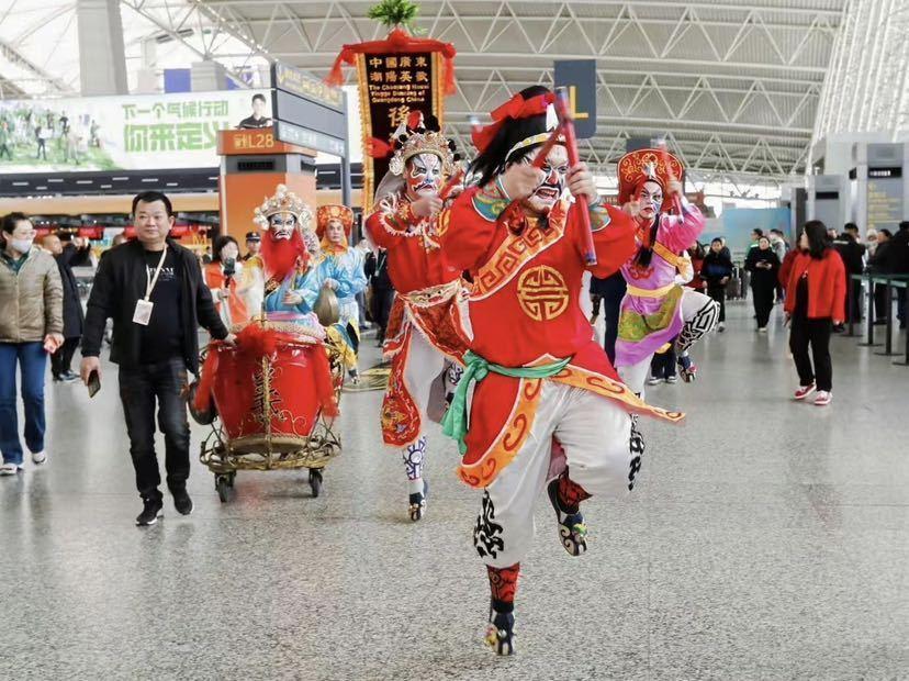 2月8日,火遍全网的潮汕英歌舞来到了广州白云机场航站楼。来自广东潮阳棉北后溪传承了130多年的英歌队,为广大旅客献上了一场精彩热闹的潮汕英歌舞。