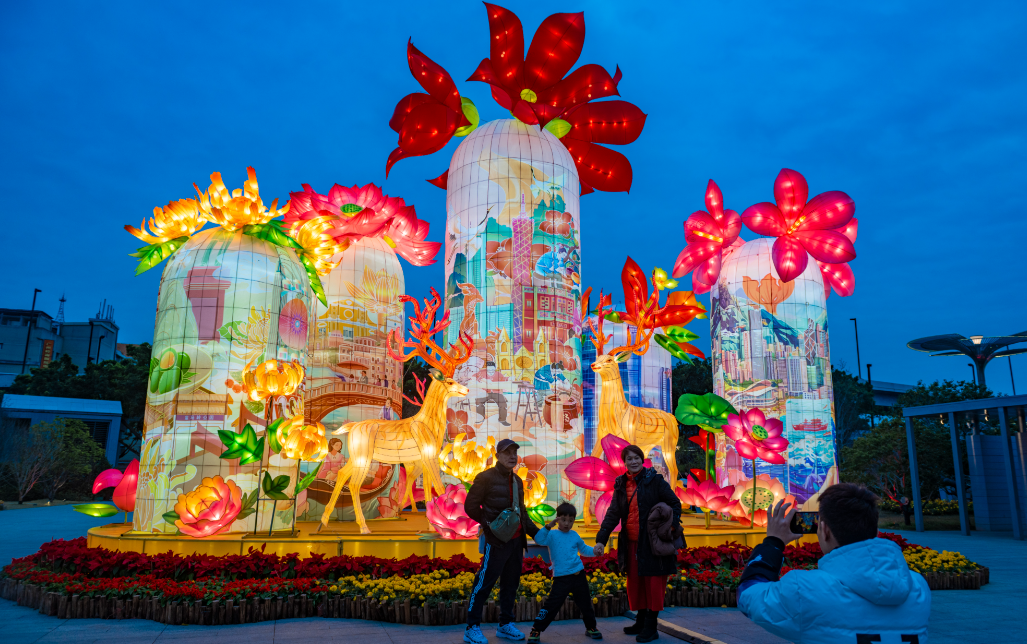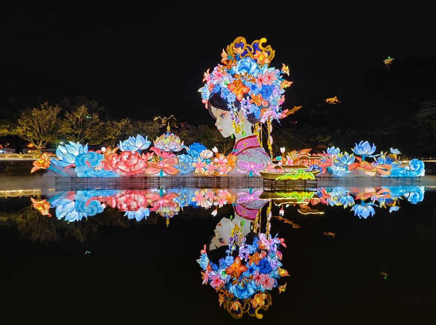 粤港澳大湾区灯会大型彩灯“簪花女神”