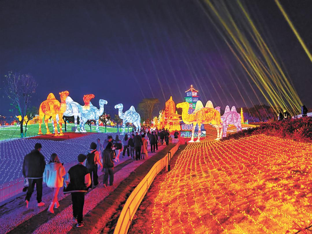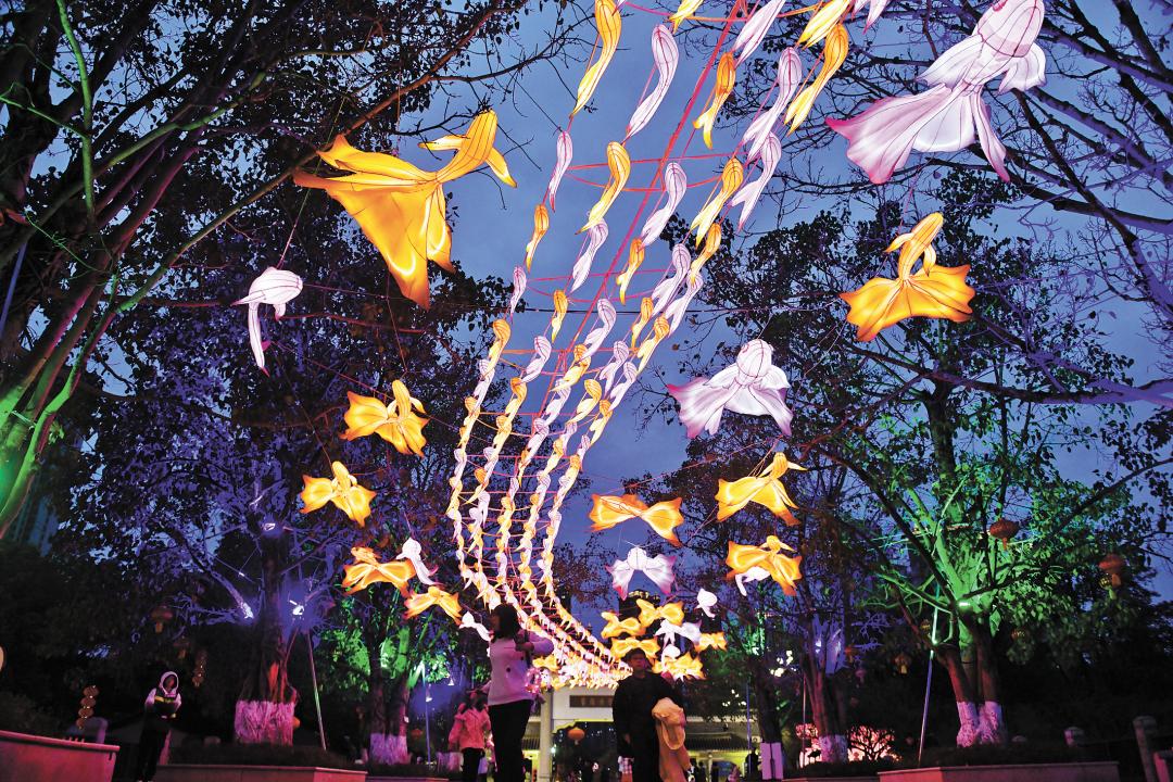 元宵灯会最重磅的一组彩灯是位于文化公园中心广场的《粤唱粤好》。