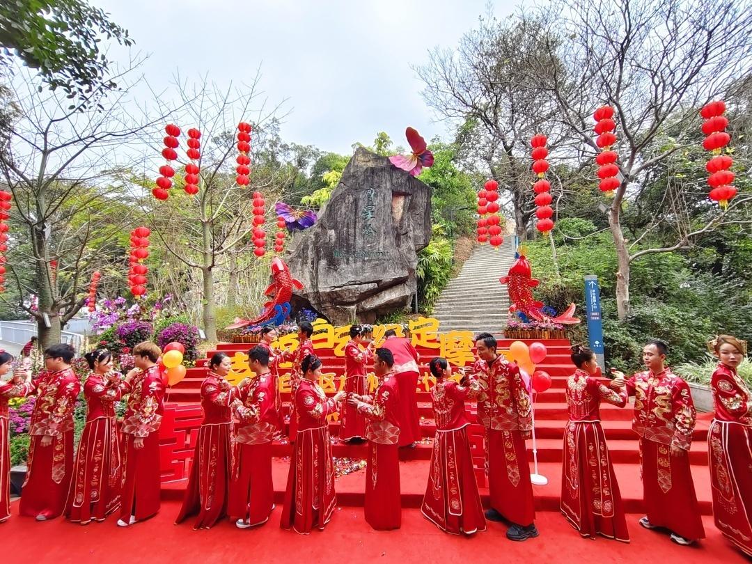 2月12日,正值元宵佳节,白云山摩星岭洋溢着满满的幸福与浪漫。由白云山摩星岭景区管理中心与白云区民政局共同举办的“幸福白云·缘定摩星”——白云区户外颁证仪式暨元宵节集体婚礼活动,在摩星岭吉星石广场温馨举行。九对幸福的新人在这里喜结连理。此次活动旨在进一步深化广州市白云区的婚俗改革,助力“甜蜜经济”发展。