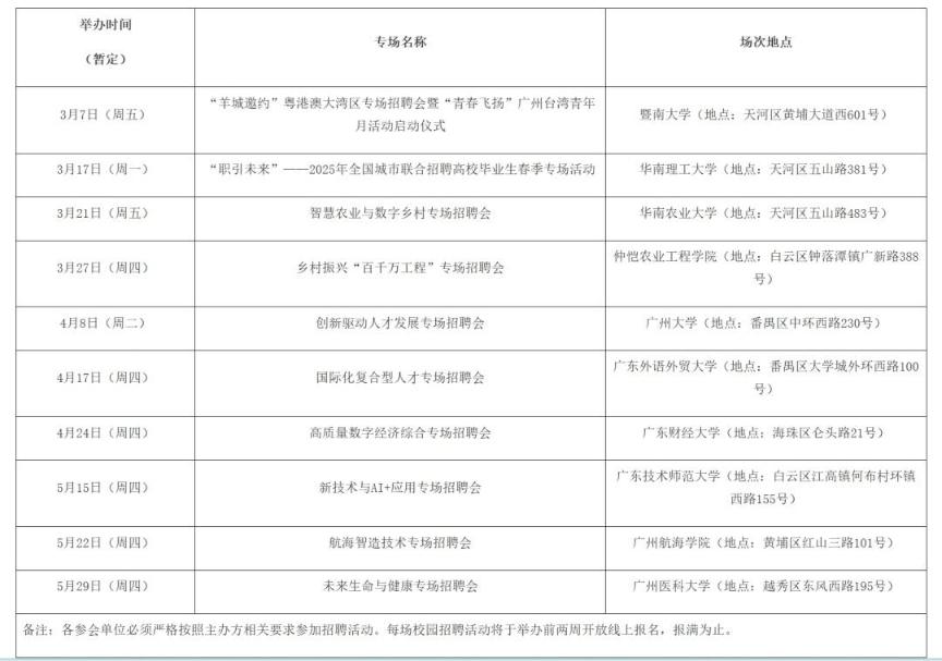 二、“广聚英才 赢在广州”2025年春季省外高校毕业生招聘活动