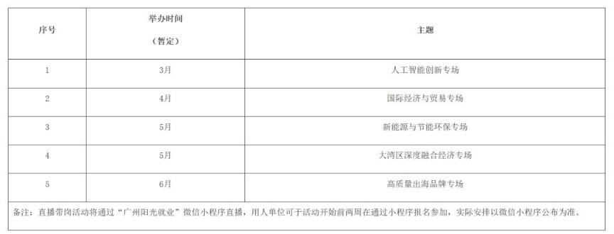今年系列活动主题为“阳光就业·事业扬帆”。活动期间,“广州市阳光就业”微信小程序将每天举办“阳光就业”网络招聘会,联合“就业创业e站”举办专场网络招聘会,为毕业生提供全天候网络招聘服务。通过微信小程序,用人单位可实时发布招聘岗位信息,毕业生可在线注册、投递简历,应聘合适岗位。